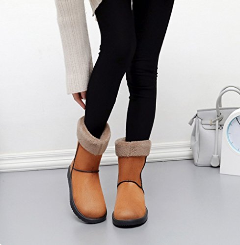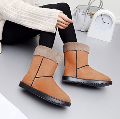 Binding : Apparel Product Description BR>Brand Name: LabatoStyle Item Name: Sherpa Fur Snow Boots Colors: Black, Khaki, Grey And Red Wine Occasion: Party, Work And Other Special Occasions. Boot Height: Mid-Calf Boot Type:Snow Boots Heel Height:1.18inch Outsole Material:Rubber Upper Material:Suede Leather Closure Type:Pull-On Toe Shape:Round Toe Pattern Type:Solid Lining Material: Faux Fur Season: Winter, Autumn and Spring Insole: Removable And Washable Functions Water-Resistant, Cushioning,And Durable. Hard-Wearing, Warm and Height Increasing. Size Table 6 B(M) US= CN size36= Fit Foot Length 22.5-22.9cm =8.87- 9.02inch 6.5B(M) US= CN size37= Fit Foot Length 23.0-23.4cm =7.06- 9.22inch 7 B(M) US= CN size38= Fit Foot Length 23.5-23.9cm =9.26- 9.42inch 8 B(M) US= CN size39= Fit Foot Length 24-24.4cm =9.46- 9.61inch 8.5B(M) US= CN size40= Fit Foot Length 24.5-24.9cm =9.65-9.81inch Attentions Please choose ONE SIZE UP for comfortable wearing. Please allow for color difference due to different monitor and light. Please understand that there may be 1-2cm error because of the different measurement methods. 0