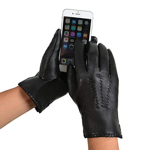Product Description Our GSG men's woven gloves are made of genuine sheepskin leather. Exquisite gloves with handmade woven stitch. Touchscreen design on whole palm and 5 fingers, much easier for you to text, use a smartphone, tablet, or your GPS devices. The gloves are supple, comfortable and very durable. 100% polyester lining is warm but not bulky. Great for everyday use or even driving. 0