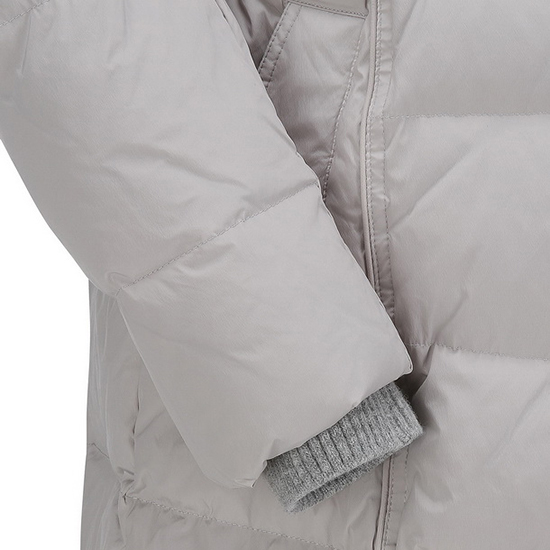 - 경량 소재에 이면 구스다운 충전재와 하이넥 이면