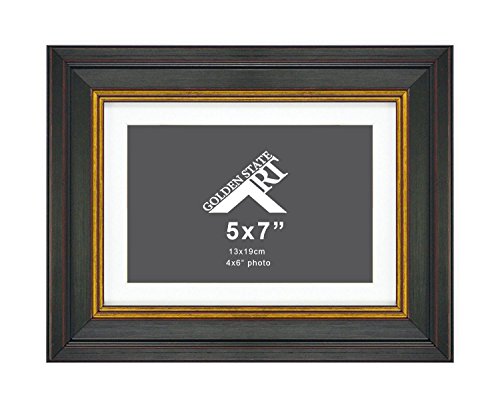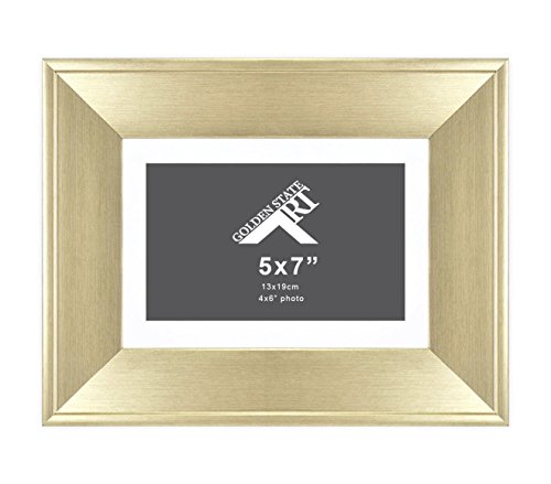 -. Binding : Kitchen -. Brand : Golden State Art -. Color : Dark Walnut Brown -. Feature : A New Dark Walnut Brown Style Picture Frame with Real Glass / Includes a White mat with white core, Opening size: 3.5 x 5.5 inches. / For Pictures: 5x7 inches (without Mat) & 4x6 inches (with Mat). / Overall Frame size: 9.5x7.5 inches. / Real Glass with Easel Stand on the back and 2 hangers for vertical and horizontal hanging options. -. IsAutographed : 0 -. Label : Golden State Art -. Manufacturer : Golden State Art -. Model : GSA-M-TS013-57-02-S-SF0207 -. PackageQuantity : 1 -. ProductGroup : Home -. ProductTypeName : HOME -. Publisher : Golden State Art -. Size : 5x7 for 4x6 Photo -. Studio : Golden State Art -. Title : Golden State Art,5x7 Frame for 4x6 Photo with White Mat, Table-Top Easel Stand, & Real Glass (Vertical + Horizontal)