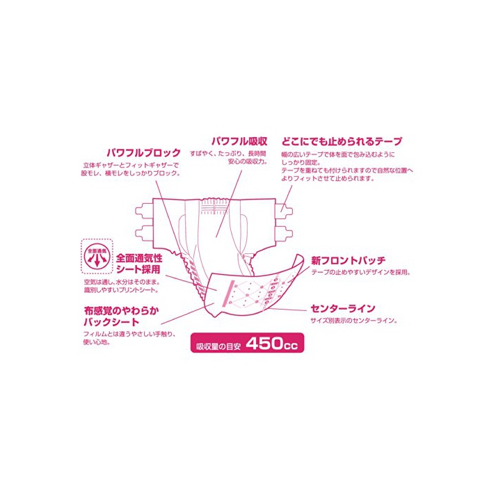 원재료 : 표면재:polio《레훈》계 불직천,흡수재:면상펄프/흡수지/고분자 흡수재,방수재:투습성폴리에틸렌 필름/폴리프로필렌 불직천,지착재료:면패스너,신축재:폴리우레탄,결합재:핫 멜트 점착재
