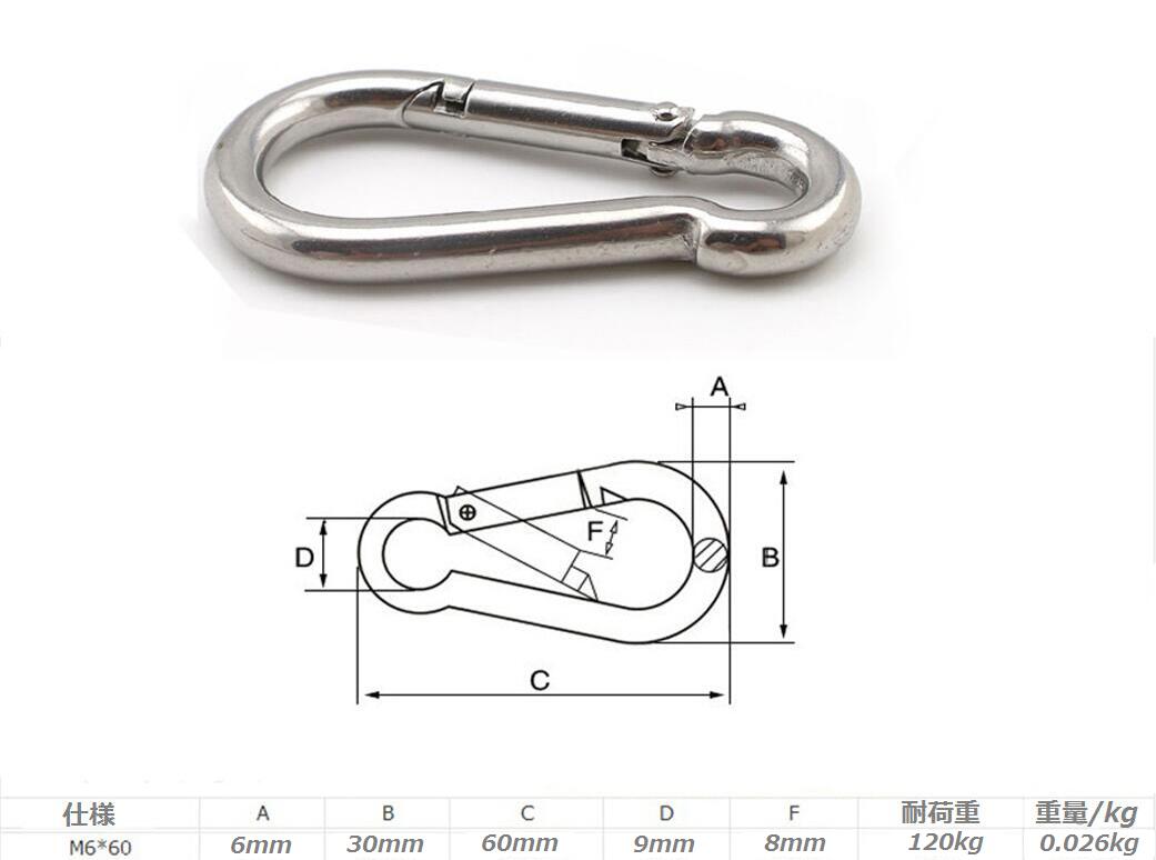 スプリングスナップ ステンレス製 10個セット スナップ スプリング フック 線径6mm長さ60mm カラビナ