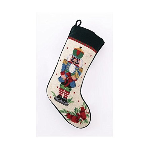 Blue Nutcracker Melody with Trumpet Christmas Stocking, Wool & Velvet Needlepoint, 11 Inch X 18 Inch