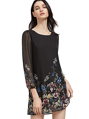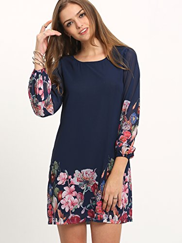 This sweet chiffon floral dress features long sleeves .(NOTE: Some styles have no zip back) . Slightly blurred floral print is carried on throughout the front hem of the bodice for a cuty finish with which the details definitely enhance its overall appeal.