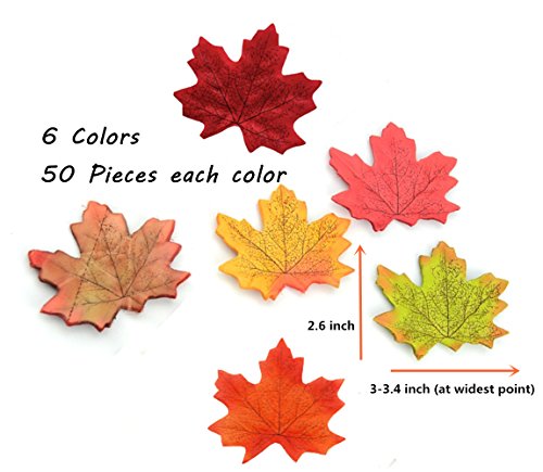 - Silk faux fall maple leaves included 6 colors as pictures shown, approx. 50 pieces each color; Size: approx. 8.5 x 6.5cm/ 3.35 x 2.6 inches,6 different colors each color set is individually wrapped.