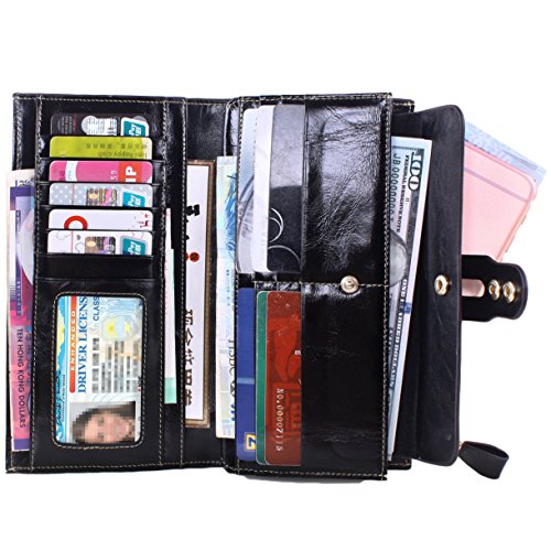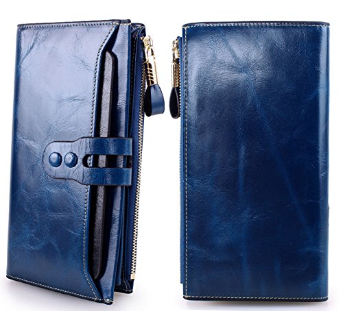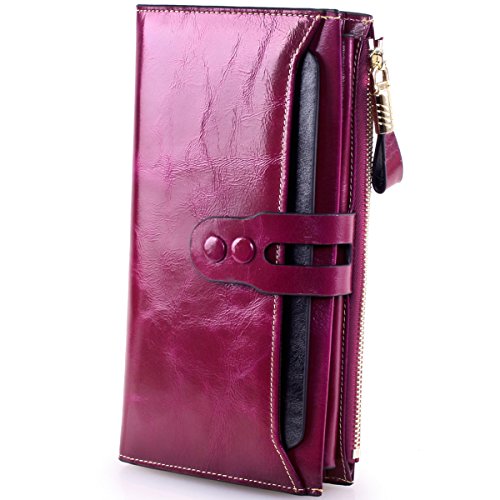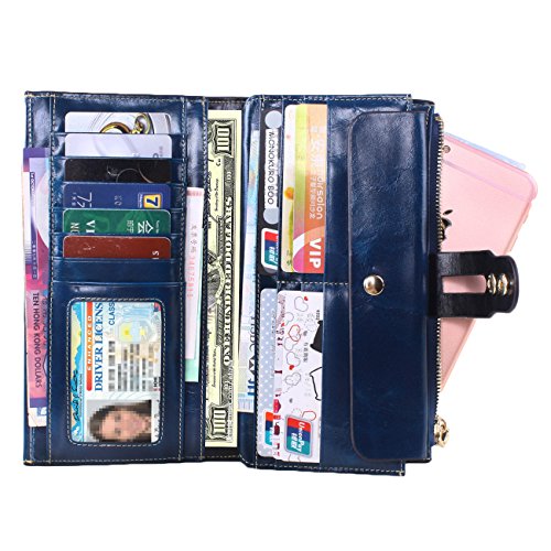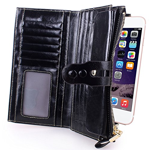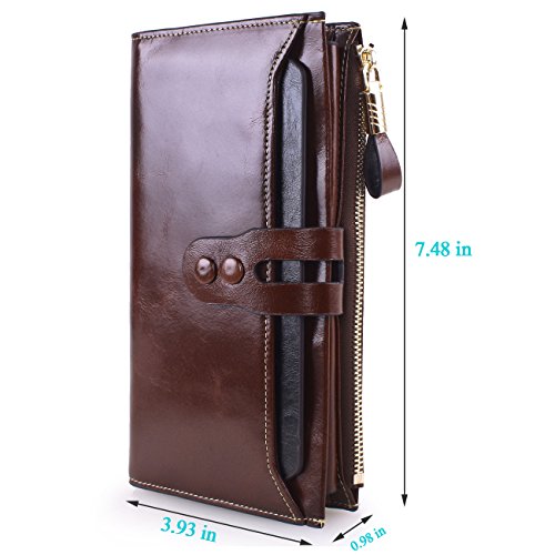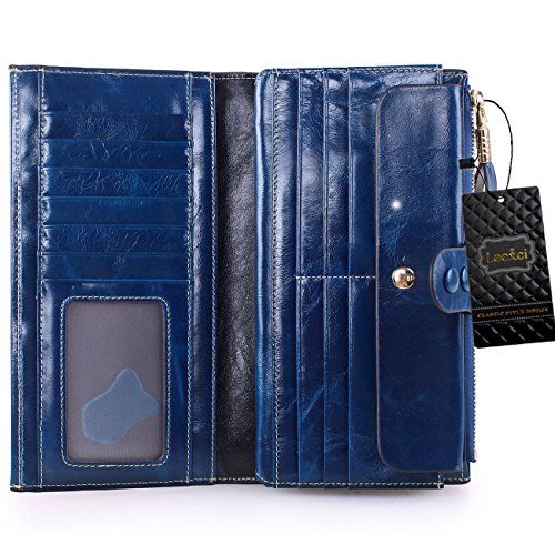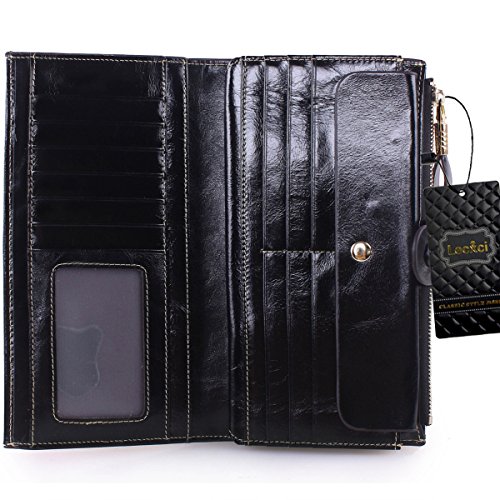 -. Brand : Lecxci -. Department : womens -. Feature : Made By Genuine cowhide leather, high quality polyster interior, brings soft hand feeling. Scratch Resistant & Wonderful Touching / Dimensions: 7.48 x 3.93 x 0.98 inches; Fit for slim cell phone under 6 inch / Spacious & Multi-pocket Wallet with detachable card slots - Holds about 17 credit cards + 2 ID windows + 5 large pouches for Bills and cash + 1 zipper pocket for cash, coins and some essentials + 1 snap button for cell phone; A pack of fix!!! / Special designed Two snap button closure for adjusting its slim figure and well decorating the wallets; A leather hook on the zipper makes it elegant carrying / This genuine leather clutch wallet with durable nylon stitching, no break lines, specially designed luxury high quality model -. ProductGroup : Shoes -. ProductTypeName : HANDBAG -. Title : Lecxci Women Genuine Leather Large Checkbook, Zipper Multi Credit Cards Clutch Handbags Wallets for Women