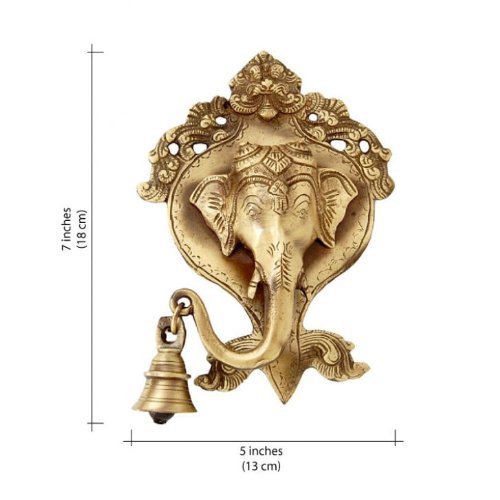 Two Moustaches Ganesh Face Wall Hanging with Bell, 5" x 5" x 7"