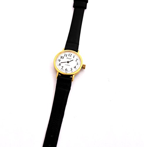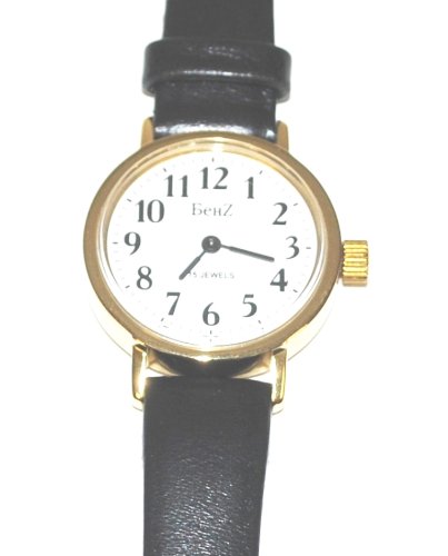 Russian Mechanical movement - manual wind up. No batteries needed. 15 Jewels. Running time per winding no less than 30 hours. The face is about 1" (2.5 cm) in diameter. The length with bracelet is about 8" (20 cm). Comes with black natural leather band. Made in Belarus Wonderful gift for any occasion. Includes gift box.Feature
