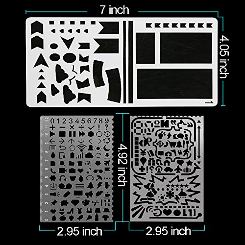 20pcs plastic and 2 pcs stainless steel style bullet journal stencils including various shapes and icons are designed for you to create your perfect daily or personality graffiti