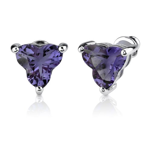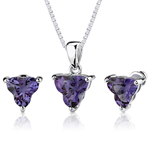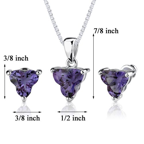 -. Title : Simulated Alexandrite Pendant Earrings Set Sterling Silver 10.75 Carats Tri Flower Cut