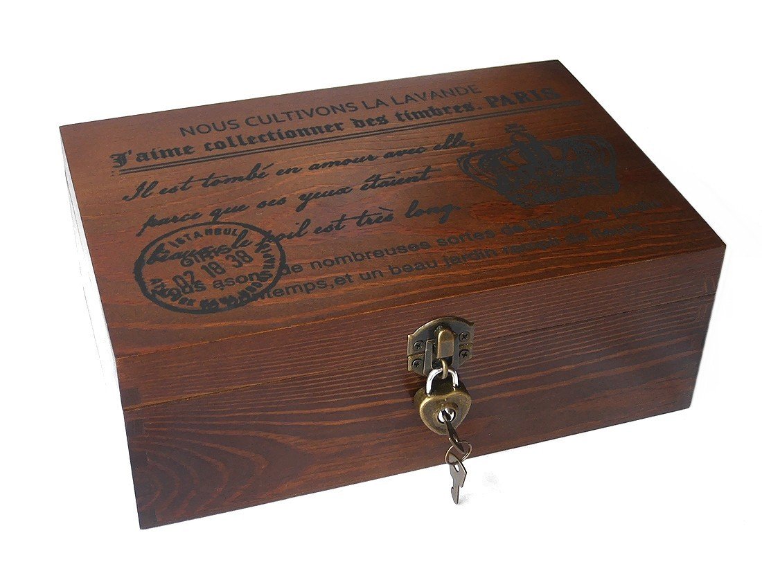 · It is a wooden box storage box with a heart-shaped key of an antique style crown pattern.