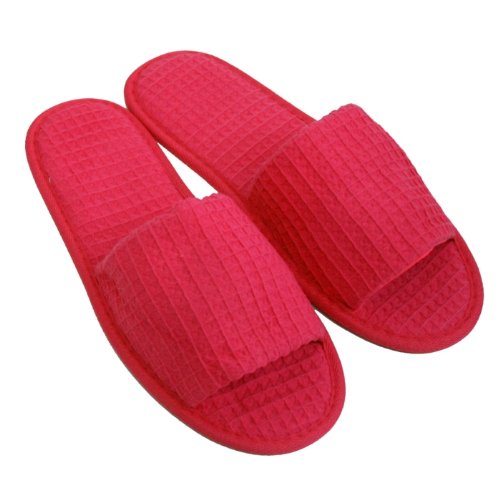 -. Brand : TowelRobes -. Department : unisex-adult -. Feature : Slippers Made From 65% Top Quality Cotton,35% Polyester / Waffle Open Toe Slippers, Non Skid / These Slippers for Unisex / One Size 11.5" Length / Spa&Hotel Slippers -. ProductGroup : Apparel -. ProductTypeName : APPAREL -. Size : One Size 11.5" Length -. Title : Waffle Open Toe Adult Slippers Cloth Spa Hotel Unisex Fuchsia Slippers