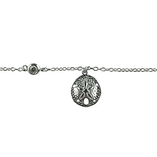 -. Title : Sterling Silver Sand Dollar with CZ Anklet