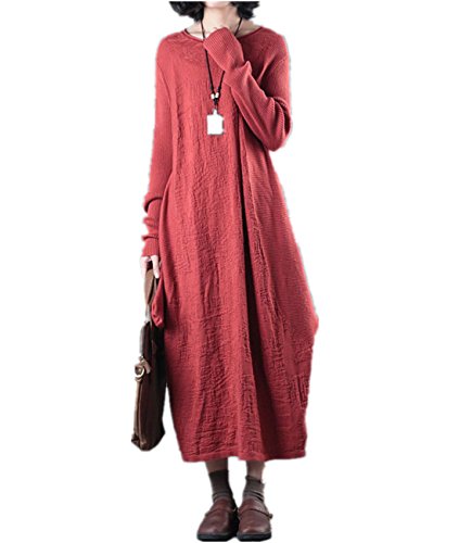 -. Title : Yesno JU6 レディースロングニットセータードレスプルオーバークルーネックロングスリーブバギードレスニットカジュアルルーズフィット