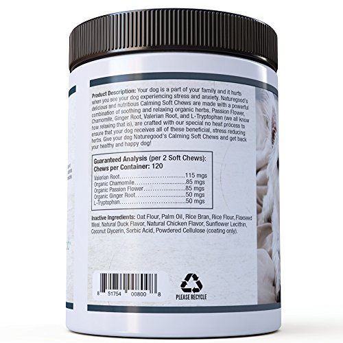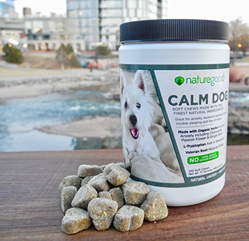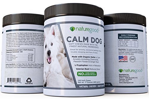 NatureGood's All Natural Calming Soft Chews: We all hate to see our loving, trusting four-legged friend suffering from personality altering stress, anxiety and fear. It can turn our happy dog into a barking, shaking, chewing and unfortunately, biting stranger. Our soft chews offer you and your pet temporary relief from the effects of the stress, anxiety and fear that your dog may be going through. Whether it's loud noises like fireworks, stressful situations like visits to the vet, separation anxiety, or even introductions to other pets. Our soft chews provide a delicious and nutritious solution to help your dog cope with the harmful effects of stress. Five soothing and unique ingredients combine to form a bite sized, calming treat that let's your pet return to the happy dog you know and love. As with all of our delicious soft chews, it's made using our special no heat process that maintains the ingredient integrity and quality that allows your dog to fully benefit from the nutritional value of the healthful ingredients we use.