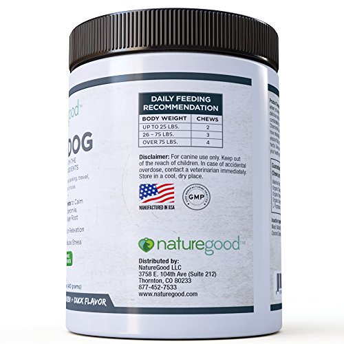 ✅120 SOFT CHEWS, INGREDIENTS YOU CAN TRUST, RELIEVES ANXIETY + STRESS OR YOUR MONEY BACK: NatureGood has crafted a natural and delicious stress relief supplement to help your dog temporarily improve anxiety, fear, nervousness, and barking. Our 4 gram chicken and duck flavored calming soft chews are easy to give and so delicious, they are the perfect nervous dog treat