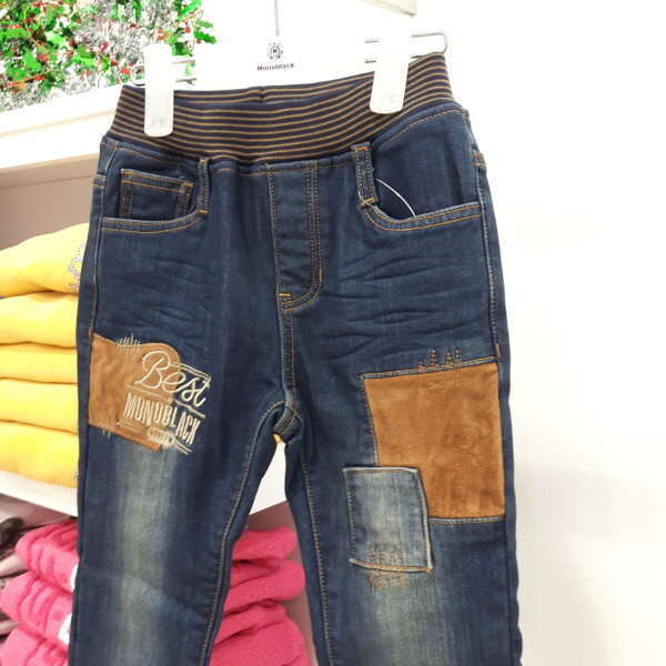 허리 전체에 밴딩처리가 되어있어 입고 벗기 편리하고 허리조임 기능이 있어 더 편리합니다 안감기모 청바지로 따뜻함을 더 하였고 스웨이드배색으로 포인트를 주었습니다