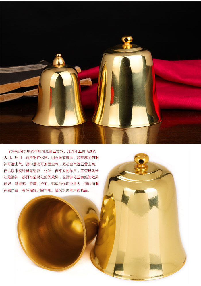 Effect of?bell?in Feng Shui?can?restrain?Wuhuang?brake.?Every?time?the door,?the door?to the?Yellow?fly,?should be?hanging?copper?clock?of brake.?Because?yellow?brake?belongs to earth,?the?hanging?of gold?bellcan vent?rustic.?Bell?swing?can strengthen the?gold?gas,?shake up?gold?Qifive loess.?Since ancient times,?bronze bell?with?evil,?the evil,?the role of the peace,?whether it is wind chimes or bell,?is?lucky?the evil?effects,?but copper?clock?of?Wuhuang?brake?effect is best,?the?role of?evil,?magic,guard?house,?Blessed?is also great,?bells?and?bell?sound,?have theblessing?of evil?effect of.?Is?Feng Shui?items commonly used.