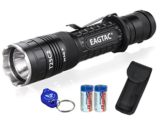 Bundle: EagleTac XP-L V5 T25C2 1250 Lumens 300 Yards Compact LED Tactical Flashlight with 2x CR123A Batteries, Heavy Duty Holster and Lumentac Keychain Light - G25C2 T20C2 Upgrade