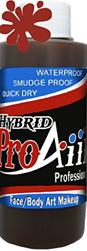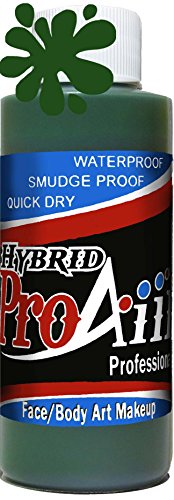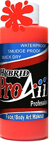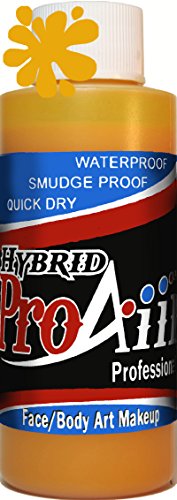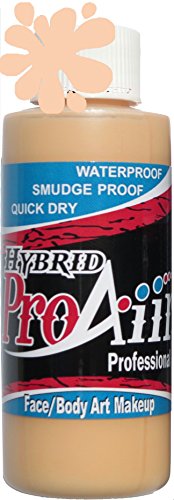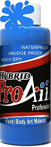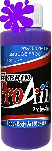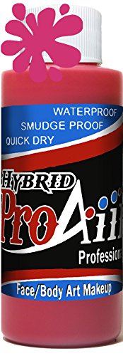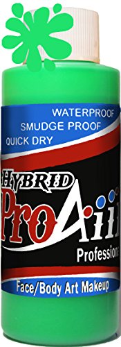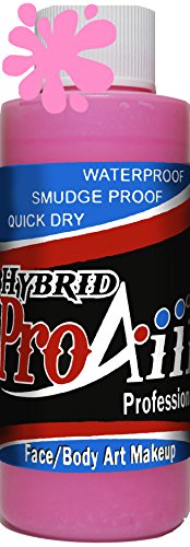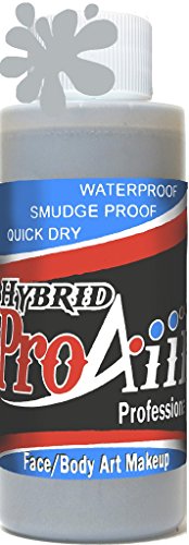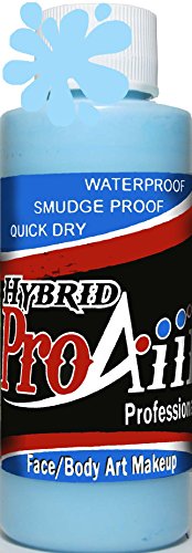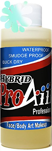 ProAiir Hybrid Makeup is a combination of the essential ingredients of cosmetic grade alcohol (as used in liquid eye liner) and the highest quality pigments available to create the perfect hybrid airbrush makeup product. Unlike other hybrid makeup, ProAiir contains no water and blends together a complete set of water repellant makeup ingredients. ProAiir sets the standard for hybrid makeup today and tomorrow with the most durable, longest lasting, non-staining, most water repellant makeup formula on the market. The absence of water in our formula means you'll experience little or no separation of pigments from fluids, leaving you time to service more customers instead of wasting time stirring or shaking bottles. ProAiir works well with both airbrush and traditional brush painting with unbeatable durability. Unlike other airbrush products, ProAiir sprays without lingering clouds of fog. By following the simple application instructions, ProAiir will outperform and outlast all hybrid products for application and durability. Not only will your designs look better and last longer, you will have happy customers from the time the design is complete until they are ready to remove it. Ease of application, durability and simple removal. What more could an artist ask for in a hybrid makeup? When you need the most durable, longest lasting face and body makeup, choose ProAiir from ShowOffs!Feature