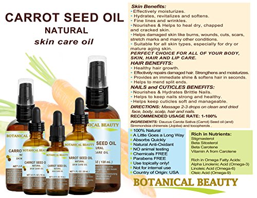 Carrot Seed Oil, Chemical Free, A Little Goes a Long Way, Absorbs Quickly, not greasy, unscented.