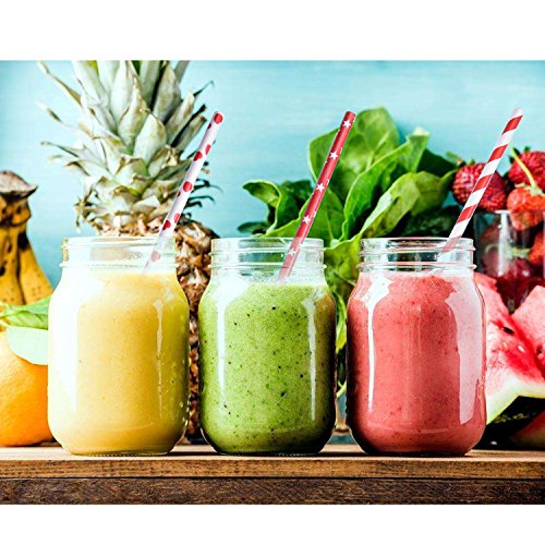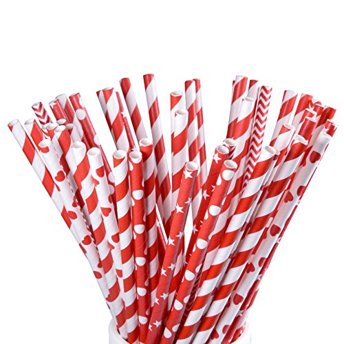 Kearui Paper Drinking Straws for Birthdays, Weddings, Christmas, Celebrations and Parties, Red, 150 Pieces (5 Patterns)