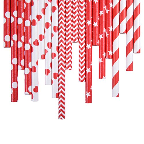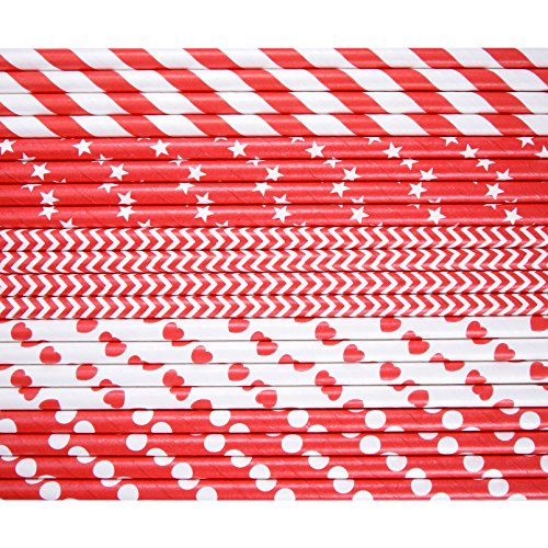 - Various Patterns: the straws include red dot, red stripe, red wave, red heart, red star patterns, each pattern for 25 pieces, very beautiful, can meet your different needs