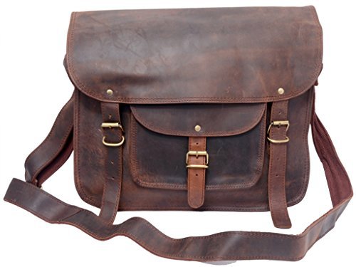-. Feature : New genuine buffalo leather bag handcrafted with vintage style / 1 front pocket,2 inner compartment and 2 zipper pocket / Dimensions: 13 inches (length), 10 inches (height), 4 inches (depth) / Strong & durable brass fittings & buckles, quality zippers, heavy duty lining / Adjustable shoulder strap enough for crossbody