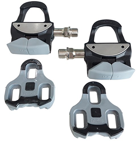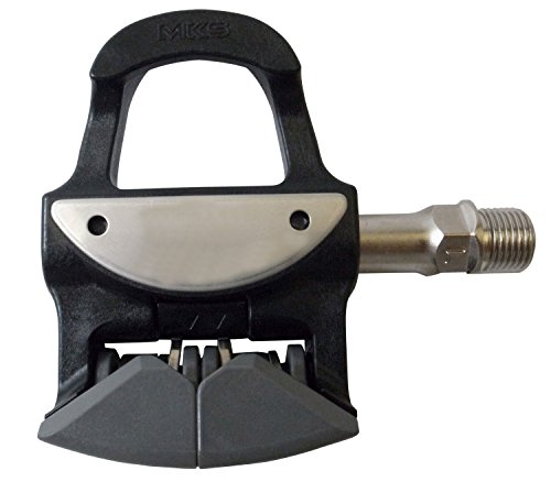 Studio : MKS Publisher : MKS Binding : Sports Product Description MKS US-L Binding Pedals Triple sealed bearings keeps pedals running longer for low maintenanceHighly smooth rotationAppropriate for beginners or people with an inflexible heelSet of premium brass Look style cleats includedReinforced plastic bodyUnique separated binding system provides secure holding of cleat with minimum release force and angle to disengage3 stage adjustable tension Item SpecificationsColorBlackWeight290MaterialCompositePedal Spindle9/16"Spindle MaterialChromoly SteelPedal TypeSingle Sided CliplessDefined ColorBlack 0