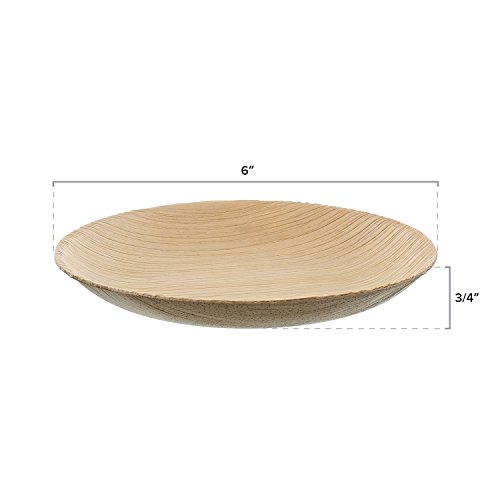 CiboWares Premium 6" Round Areca Palm Leaf Cocktail Plate, Eco-Friendly and Disposable for Home and Catering, Package of 25