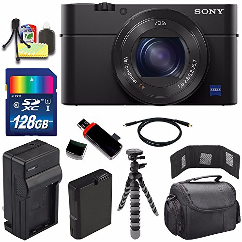 Sony Cyber-shot DSC-RX100M4 IV Digital Camera + Extra battery + Charger + 128GB Bundle 7 - International Version (No Warranty)