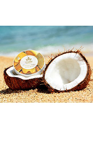 Presenting a luxurious fusion of truly powerful ingredients in an original and unique formula designed to moisturize your body leaving a glorious luster! A beauty industry first, Malie's botanical body gloss is skin care at its finest! A lavish blend of rich, creamy coconut oil and exotic butters, whipped into a smooth, luscious formula that your skin will love! The moisturizing botanical benefits of this exquisite treatment are complimented with the powerful healing properties of raw honey and beeswax. Glides on wet or dry skin, lasting longer than lotion, providing a protective barrier that locks in moisture, leaving skin hydrated with a silky radiance, glossy yet never greasy. Deep-penetrating nutrients will rejuvenate skin for a gorgeous, youthful glow. Coconut oil, abounding in antioxidants is extremely moisturizing. Organic mango and aloe butters are rich in vitamin A, C and beta carotene, which prevent degeneration of skin cells and restores skin flexibility. Organic macadamia nut butter is rich in Omega 3 & 6 and promote a soft, youthful appearance while aiding in recovery of sunburns, windburns and scars. Honey and beeswax both contain antibacterial and anti-fungals that foster healthy skin as they nourish with antioxidants that remove and prevent toxic build up. The ancient healing properties in honey have been proven to promote healthy skin tissue growth, fight aging factors, and soothe irritations. Created as a superlative alternative to conventional lotion moisturizers, this exquisite treatment is a water and alcohol-free solution to numerous skin conditions. (Most traditional lotions are made with 70% water.) Non greasy. Malie products are vegan, cruelty-free (never tested on animals) and free from parabens, sulfates, phthalates, petrochemicals, mineral oil, silicone, talc and gluten. (This deluxe formula is temperature sensitive and will solidify at 76 degrees or colder. Place jar under warm water to soften.)