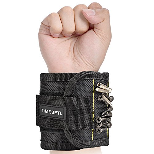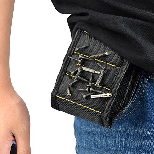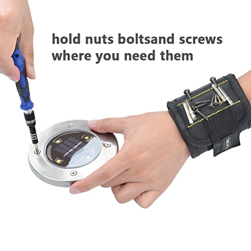 - [Super Magnetic Wrist Band] With 10 strong neodymium magnets, easily to hold tools firmly and allow you to move arms freely, screws, nuts, nails, pins, bolts, washers, drill bits, will not fall off the wristband unless you take them off. It can also hold a hammer and handful of nails or screws at the same time
