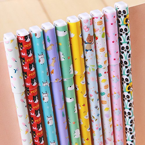 -. Title : TTKB.HH 10 Pcs Multi Colors Colorful Gel Ink Pen Cute Animal Cartoon Pin Type Wholesale Kawaii Stationery 10 pens 10 Colors Set