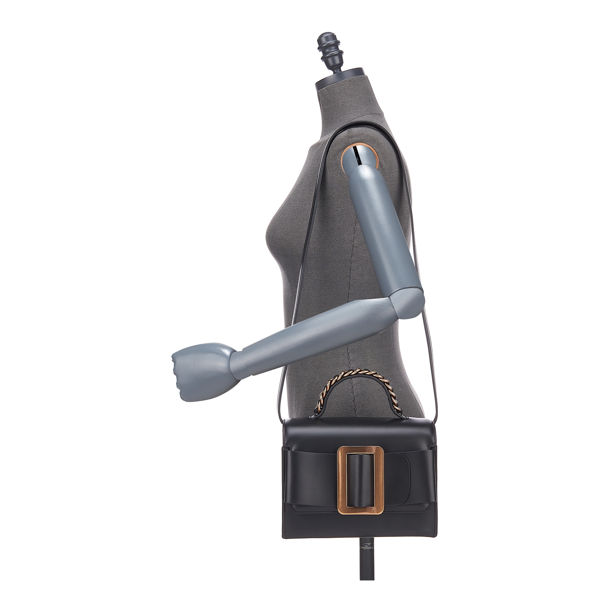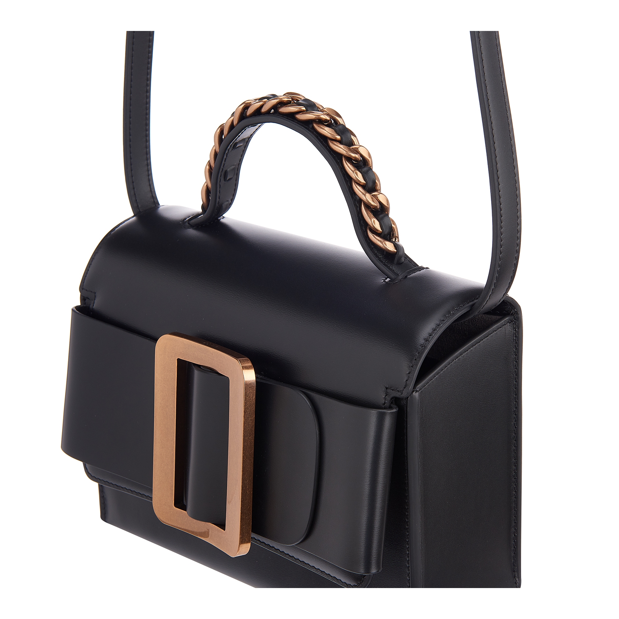 디자인 포인트:메탈 버클 장식과 핸들 부분의 체인 장식이 돋보이는 토트백내장된 스트랩 디테일로 크로스바디백 연출이 가능한 디자인미니멀한 사이즈에 넉넉한 공간을 가진 실용적인 데일리백