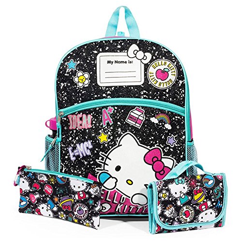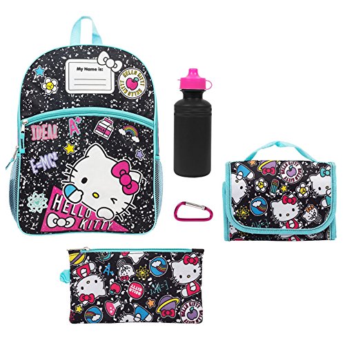 Perfect for the Hello Kitty fan, this 5-pc. Backpack Set (16"H x 12"W x 5"D). is great for all your school needs. Padded adjustable shoulder straps for a comfortable fit. Comes with Mesh side pockets and flip top water bottle. Keep food cold with the Insulated lunch kit and keep everything together with the Pencil case. This set is equipped with everything your child needs to feel organized going to and from school.Feature