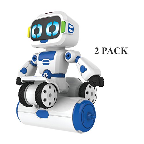 -. Feature : 2- Pack, Playful robot friend who loves to play with you, be silly, move around, spin, and most of all... tip! / Easy remote control with 5 play modes / Motions via single motor / Knows when there is something on his right or left hand, and leans to side accordingly / Can move forward, backwards, spin