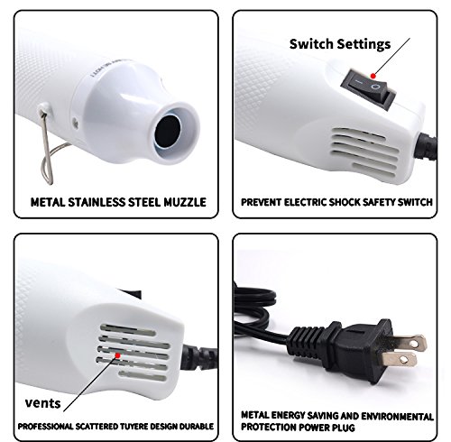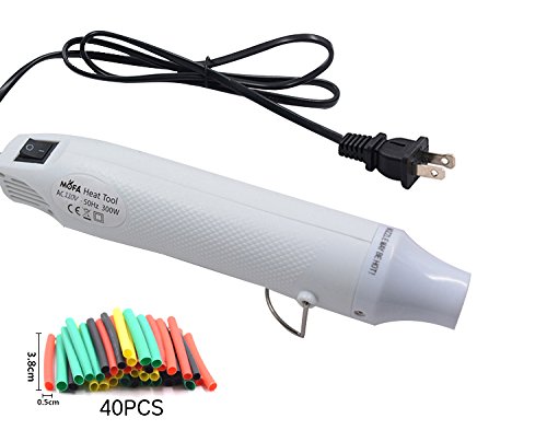 Heat Gun,mofa Hot Air Gun Tools Shrink Gun with Stand For DIY Embossing And Drying Paint Multi-Purpose Electric Heating Nozzle 300W 110Vwith 40PCS Shrink Tube(White,White)