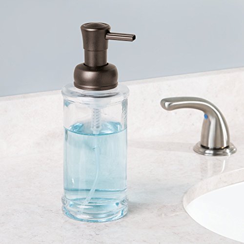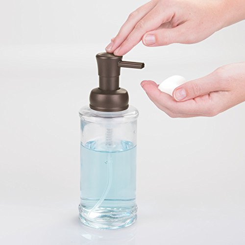 InterDesign Hamilton Glass Foaming Soap Dispenser Pump for Kitchen and Bathroom Countertop - Clear/Bronze
