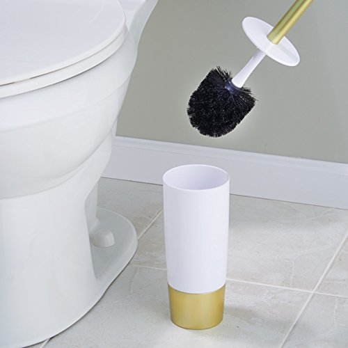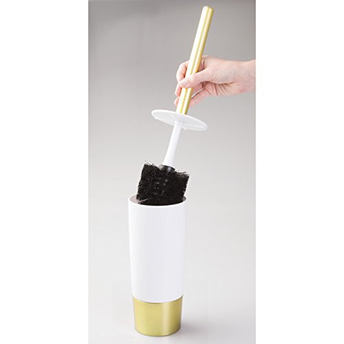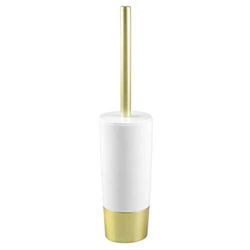 mDesign Hideaway Toilet Bowl Brush and Holder for Bathroom Storage - White/Gold/Brass
