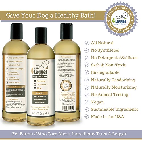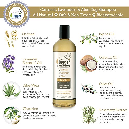 4-Legger Certified Organic Oatmeal All Natural Dog Shampoo with Aloe and Lavender Essential Oil - 16 oz