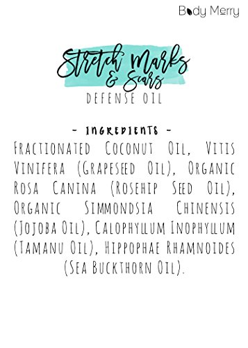 6 NOURISHING OILS - Our Stretch Marks & Scars Oil was carefully created by using ONLY 6 PURE and deeply moisturizing oils to help diminish the appearance of stretch marks and scars as well as combat dry heels and feet or hands and cuticles. This velvety blend uses Coconut Oil, Grapeseed Oil, Rosehip Seed Oil, Jojoba Oil, Tamanu Oil and Sea Buckthorn Oil to gently penetrate your skin for a restoration you can feel and see.