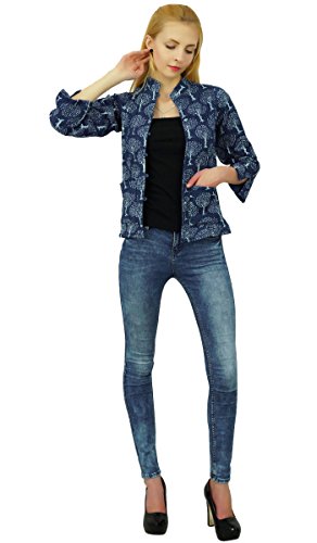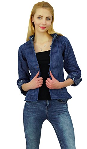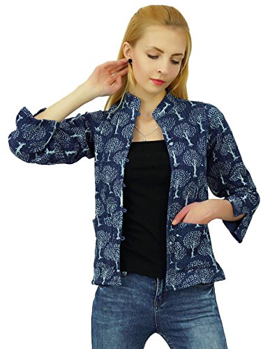 Binding : Apparel Product Description * This aesthetically designed cotton -made jacket is definitely a must have piece for all wardrobes if you love to maintain a traditional Indian look. It is a handmade piece with Hand Block prints and subtle dual shades. The key feature of the coat is that it is reversible. So you can flaunt different styles on different days. * One Side Has Navy Blue. * Hand Block Print In Tree Design. * Jacket contains Chinese collar neck. * Wooden button enclosure at the both sides with two small pockets at the one side. * One size fits most.