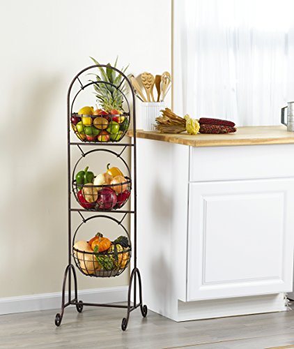 Gourmet Basics by Mikasa Homespun 3-Tier Wire Market Basket, 50-Inch, Antique Black