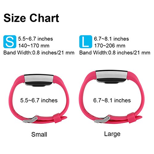 Small and Large Sizes Available: Size Small for 5.5" - 6.7" (140mm - 170mm) wrist, Size Large for 6.7" - 8.1" (170mm - 206mm) wrist. Fitbit charge 2 bands replacement wristbands specially designed for your Fitbit Charge 2 HR with the nub on the loop to hold the excess band in place.