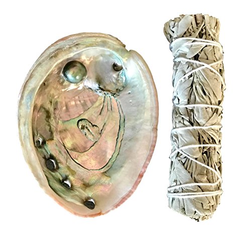 Happy Home Energy Cleansing Kit - White Sage Stick Bundle for Smudges, Incense with Abalone Shell