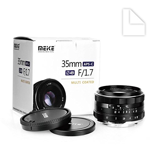 Suitable for Sony NEX3 3N 5 5T 5R 6 7 A5000 A5100 A6000 A6100 A6300 and A6500 etc and Most of Sony E mount camera. Please check with seller if you are not sure if this lens compatible with your camera or not. Specifications: Lens type: Sony APS-C Mirrorless Camera Lens Prime lens Manual Lens Construction: 6 elements in 5 Groups, 8 diaphragm blades Filter diameter: 49mm Magnification: 0.113X Focal distance: 35mm Aperture scale: F/1.7-22 Lens diameter: 60.5mm Length: 41mm Weight: 176g Lens angle: Diagonal 40°20' horizontal 36°30' vertical 23° Package content: 1 * MK-35mm Lens for Sony E-mount 2 * lens cap (rear&front) 1 * lens pouch 1 * Lens cleaning clothFeature