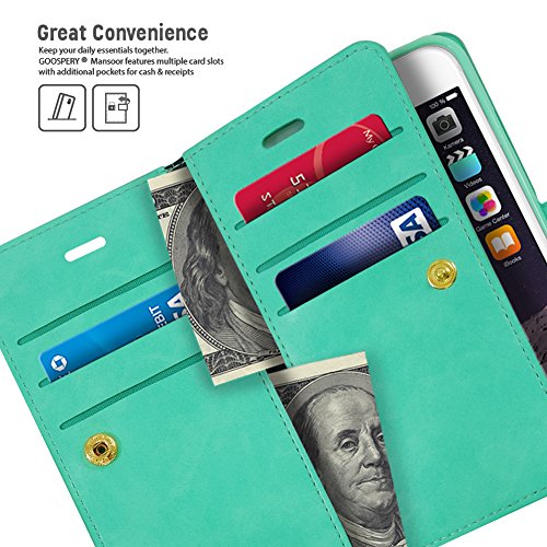 iPhone 6 PLUS / 6S PLUS Case, [Extra Card & Cash Slots] GOOSPERY® Mansoor Diary [Double Sided Wallet Case] Soft PU Leather [Drop Protection] Cover for iPhone 6S PLUS / 6 PLUS (5.5") - Mint Green