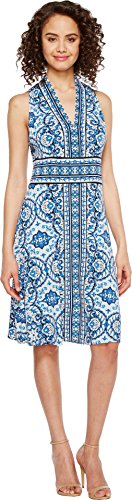 London Times Women's Matte Jersey Border Printed Halter Fit and Flare, Red, 10