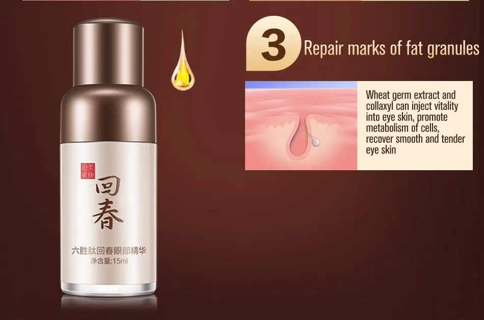 Wheat germ extract and collaxyl can inject vitality into eye skin」ャpromote metabolism of cells」ャrecover smooth and tender eye skin.